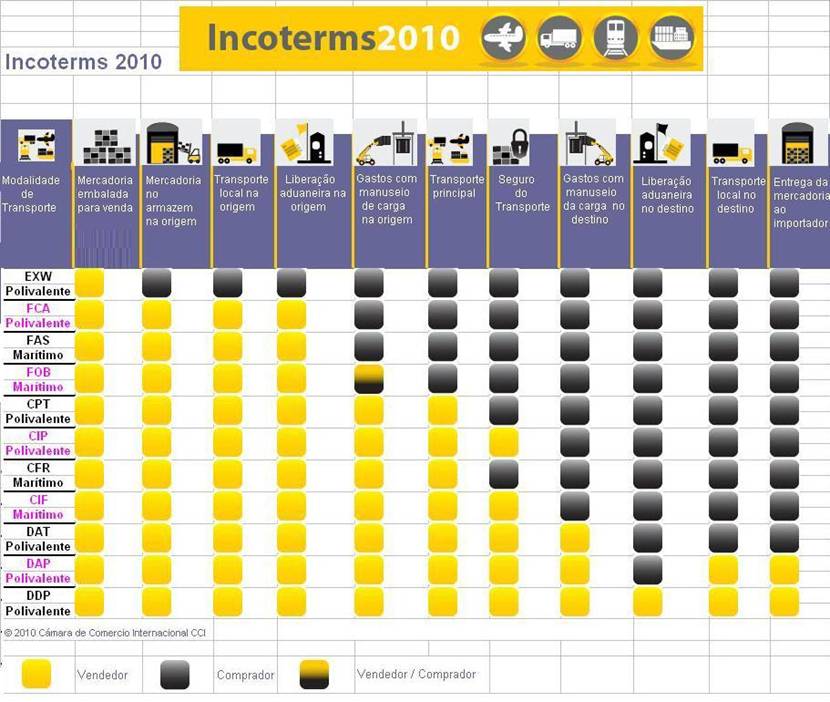 Assim, a partir dessa data, nas propostas ou contratos de foro internacional, deve-se colocar a expressão "Incoterms 2010" e a mesma não se aplica ao contrato de transporte nem ao seguro.